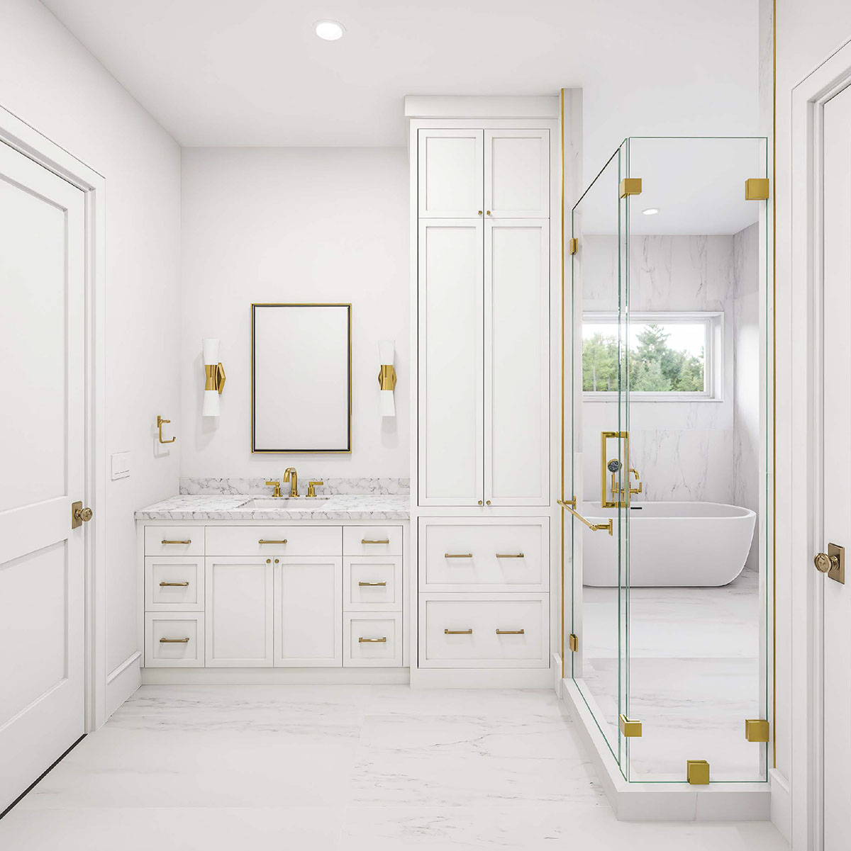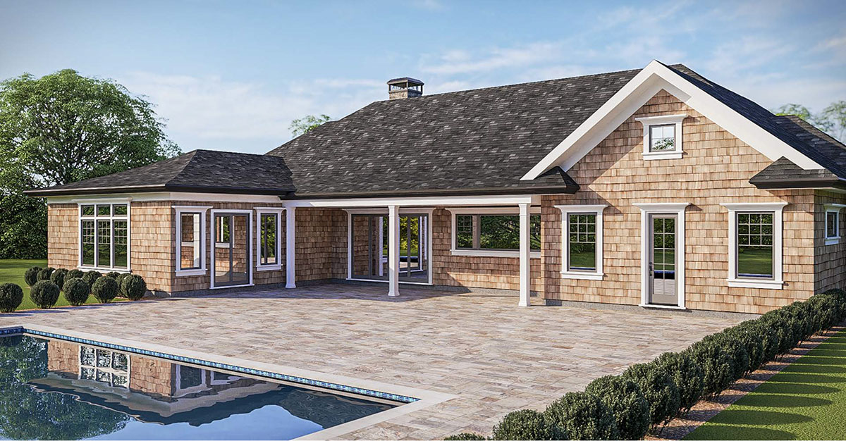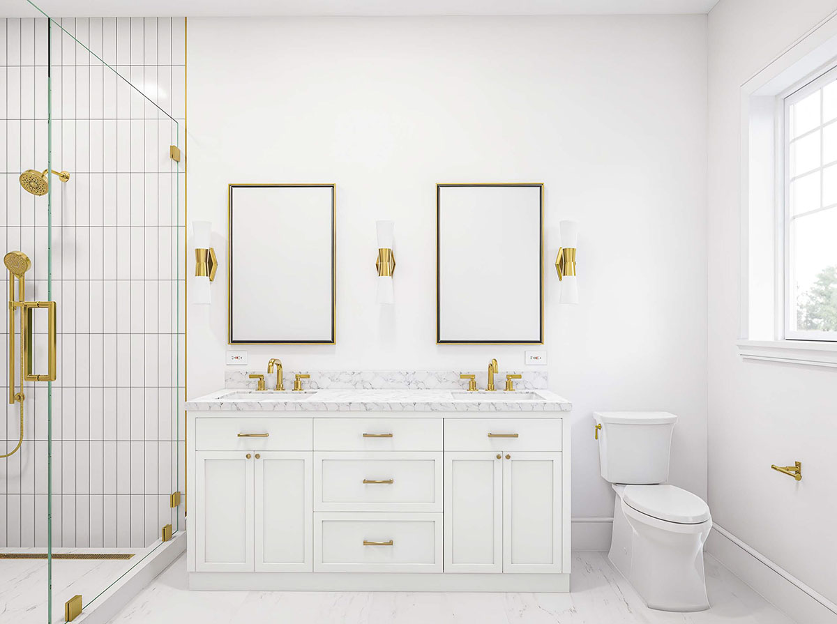 Large basement with egress and walkout can be finished to suit and extra bedrooms can be added if needed. The home’s exterior features Eastern White Cedar Shingles in Roseate Tern, GAF Timberline roofing, and stone accents by Casa di Sassi. Inside, 9′ ceilings, Marvin Elevate windows, and wide-plank white oak floors create a bright, open atmosphere. The kitchen is a standout, with custom inset cabinetry by Pennsylvania Dutch Custom Cabinetry, Napa marble countertops and backsplash, Monogram appliances, wine fridge, and a large walk-in pantry. The great room includes a 46” linear gas fireplace and connects seamlessly to outdoor living. Enjoy a 20×40′ heated gunite pool, ICE Blue marble patio, and over $140K in professional landscaping. Additional highlights include a 2-car garage, spacious laundry room, full 9′ basement with walkout, and Sonos/CAT5 pre-wiring.